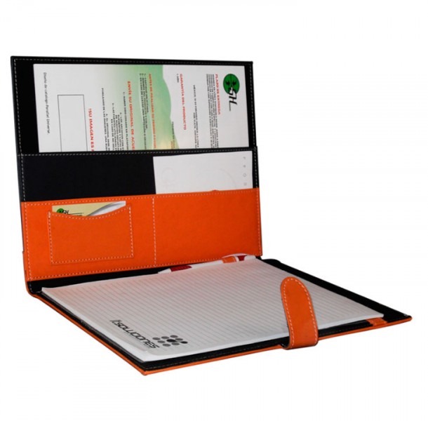 Carpeta: Para convención con trevilla, tarjetero, porta block, porta pluma, porta cd y papelera.
