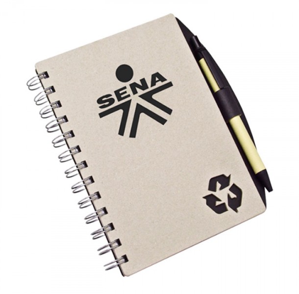 Artículo: Cuaderno ecológico forest con 50 hojas de papel reciclado, impreso a 1 tinta y con porta pluma.