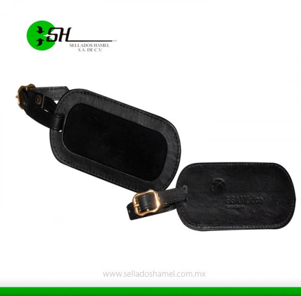 Artículo: Identificador de maleta en piel cosido con ventana de cristal.