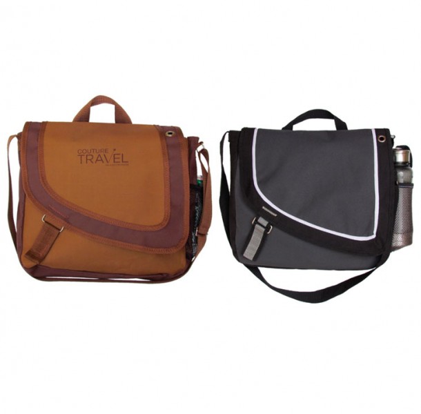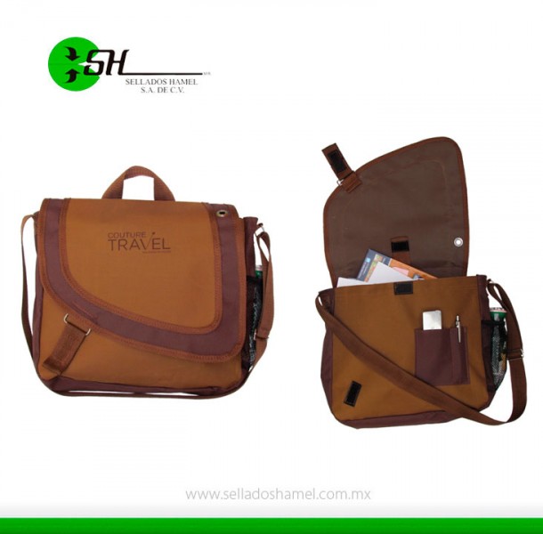 Artículo: Portafolios para viaje con cierre de velcro, malla porta botella y correa ajustable.